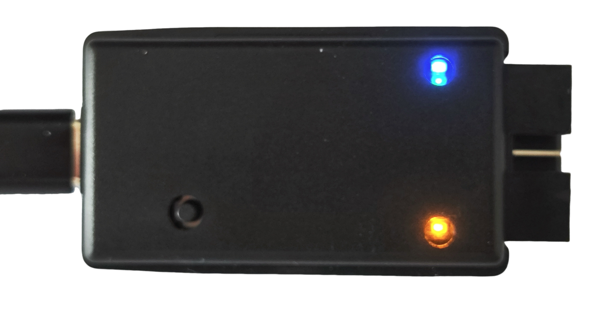 板上黄灯亮起,板上蓝灯作为连接指示状态灯,未连接时闪烁、已连接后常亮