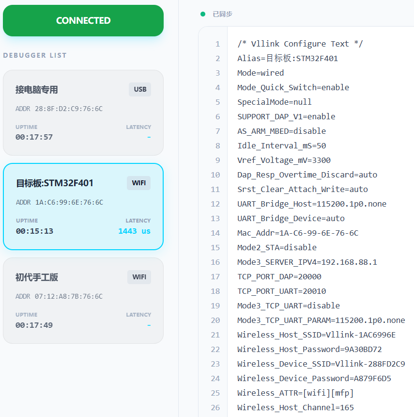 • 本调试器在 无线模式 下不会尝试 与非配置IP建立任何连接